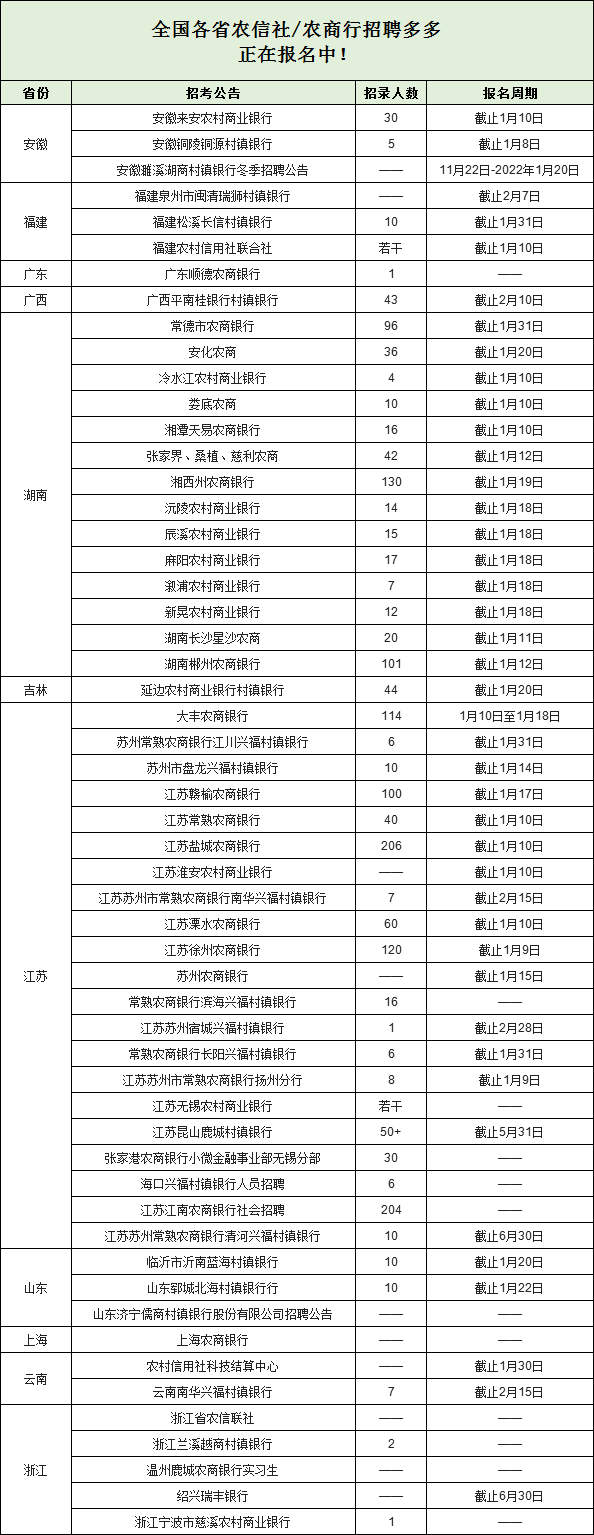 【农商行】正式工!农信社招聘1650余人!专科可报