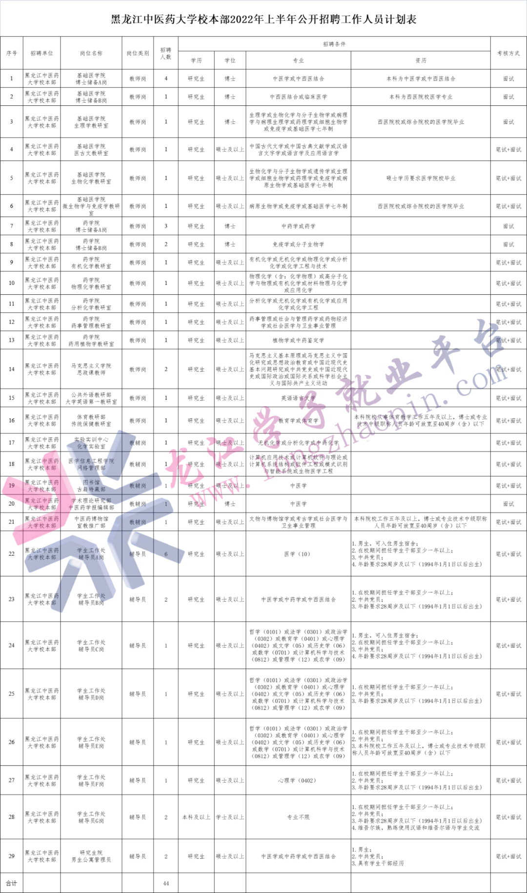 黑龙江中医药大学校本部2022年上半年公开招聘工作人员计划表.xls