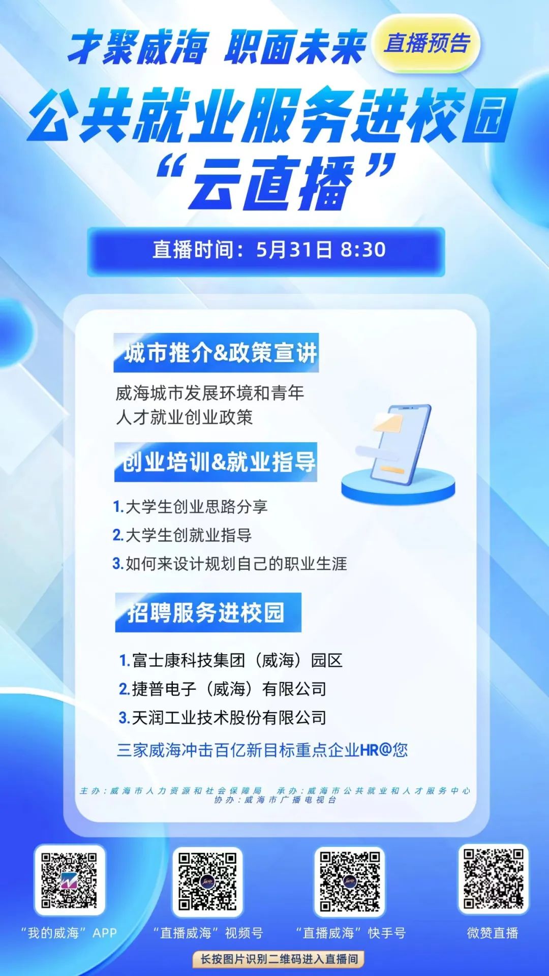 “才聚威海,职面未来”公共就业服务进校园云直播,职等你来...