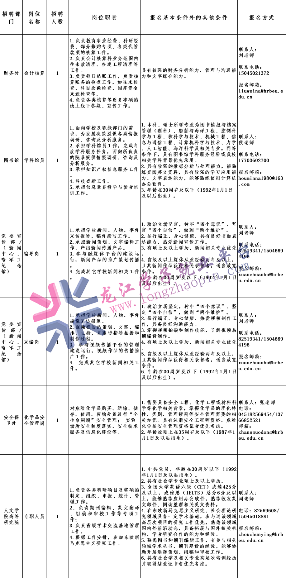人力资源处联系人:王晓红 程昕瑶