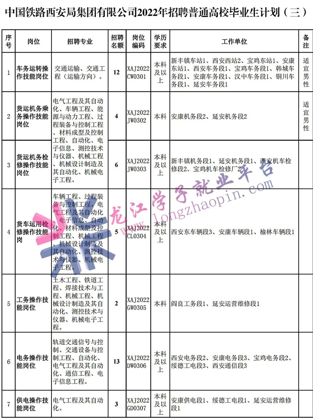 根据中国铁路西安局集团有限公司发展需要,拟招聘普通高校大学本科及以上学历毕业生,现将有关事项公告如下: