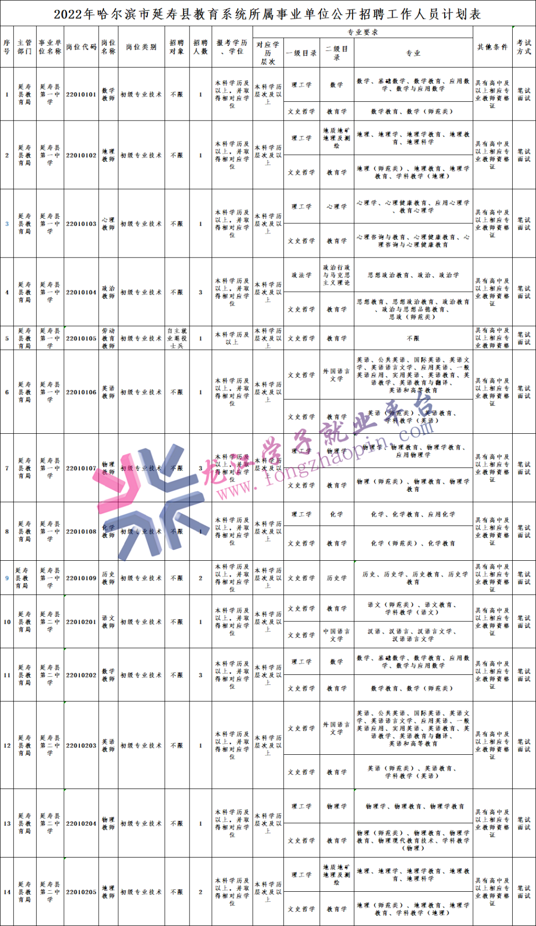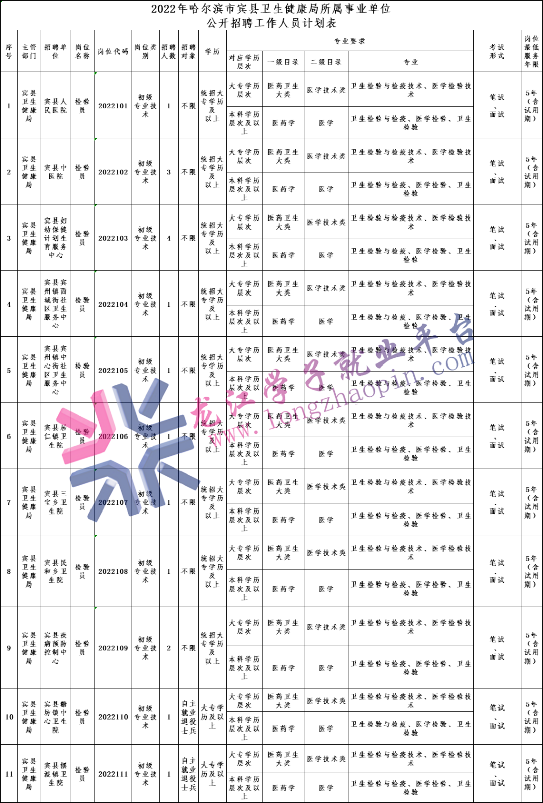 此次公开招聘事业单位工作人员17人,具体招聘岗位、人数、条件等详见《2022年哈尔滨市宾县卫生健康局所属事业单位公开招聘工作人员计划表》(以下简称《招聘计划表》)。