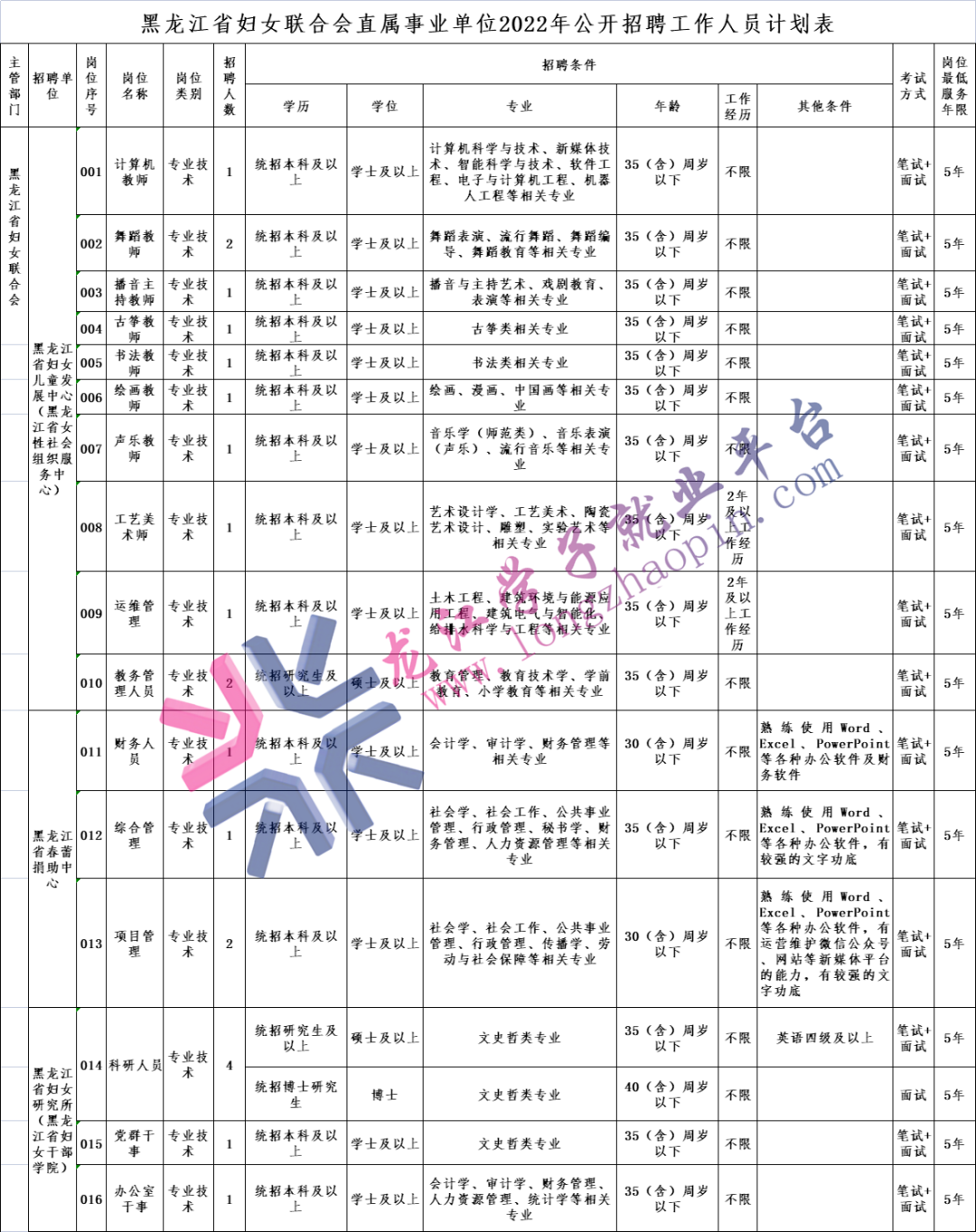 黑龙江省妇女联合会直属事业单位拟面向社会公开招聘工作人员,有关事宜公告如下: