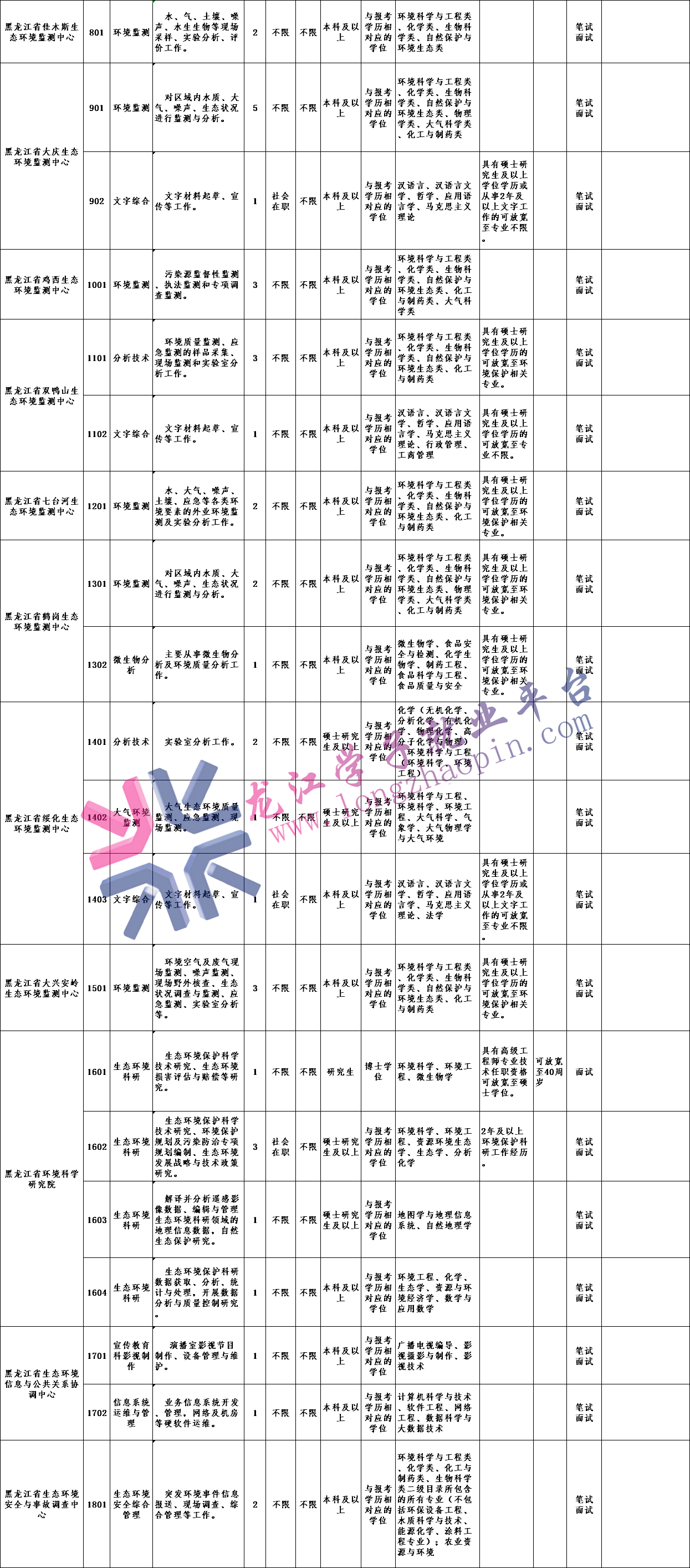 面试时间、地点在龙江先锋网和黑龙江省生态环境厅网站上另行通知。