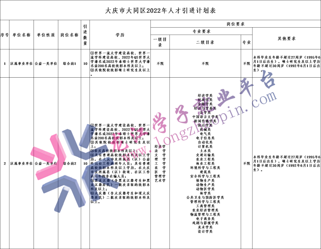 除符合上述基本条件外,还应具备招聘岗位所需的其他资格条件详见《大庆市大同区2022年人才引进计划表》(附件1)。