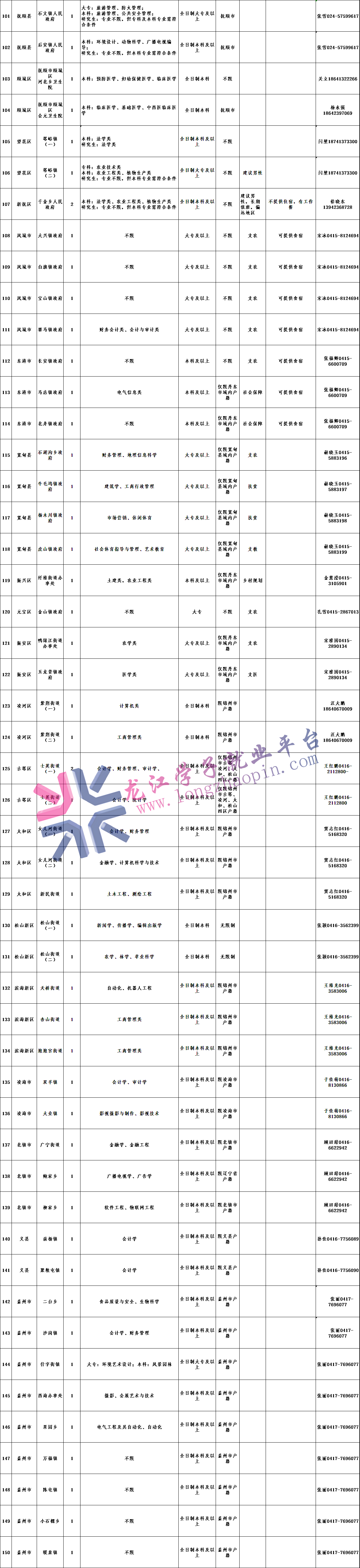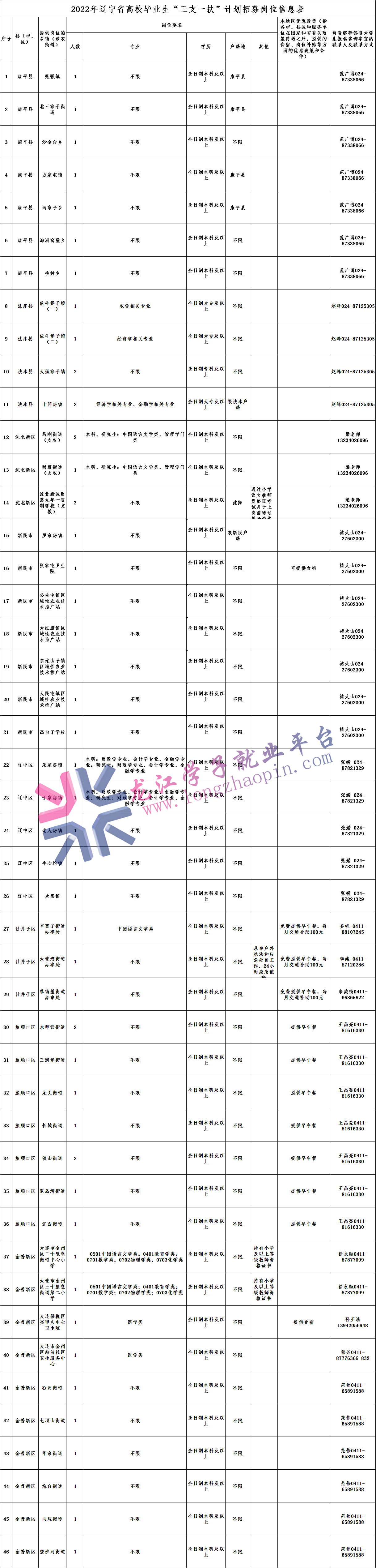 省“三支一扶”计划办公室:024-22904752
