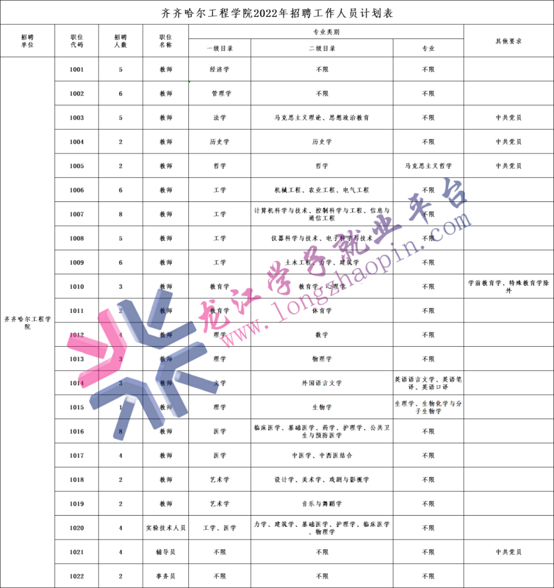 详见《齐齐哈尔工程学院2022年招聘工作人员计划表》(附件1)。