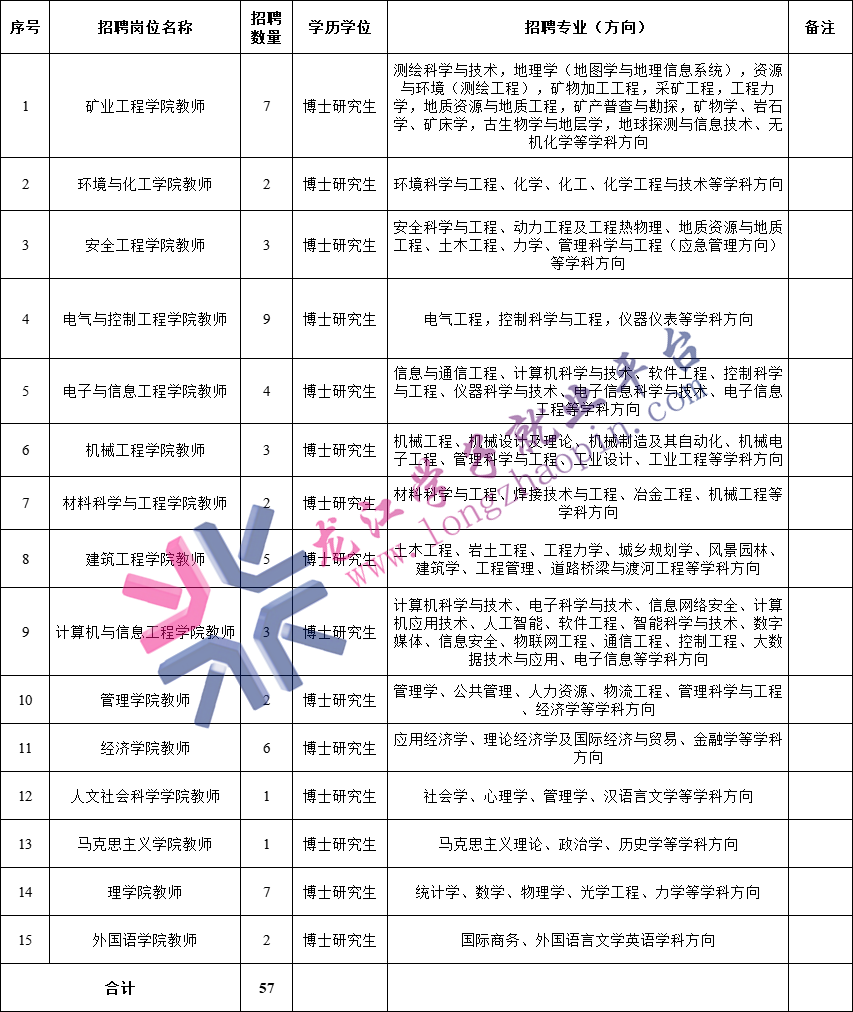 详见《黑龙江科技大学2022年下半年公开招聘博士教师计划表》(附件1)。