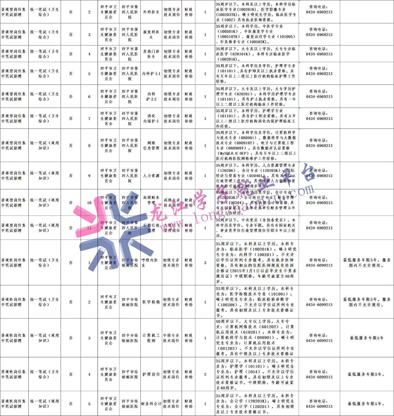 四平市人力资源和社会保障局:0434-3267026;