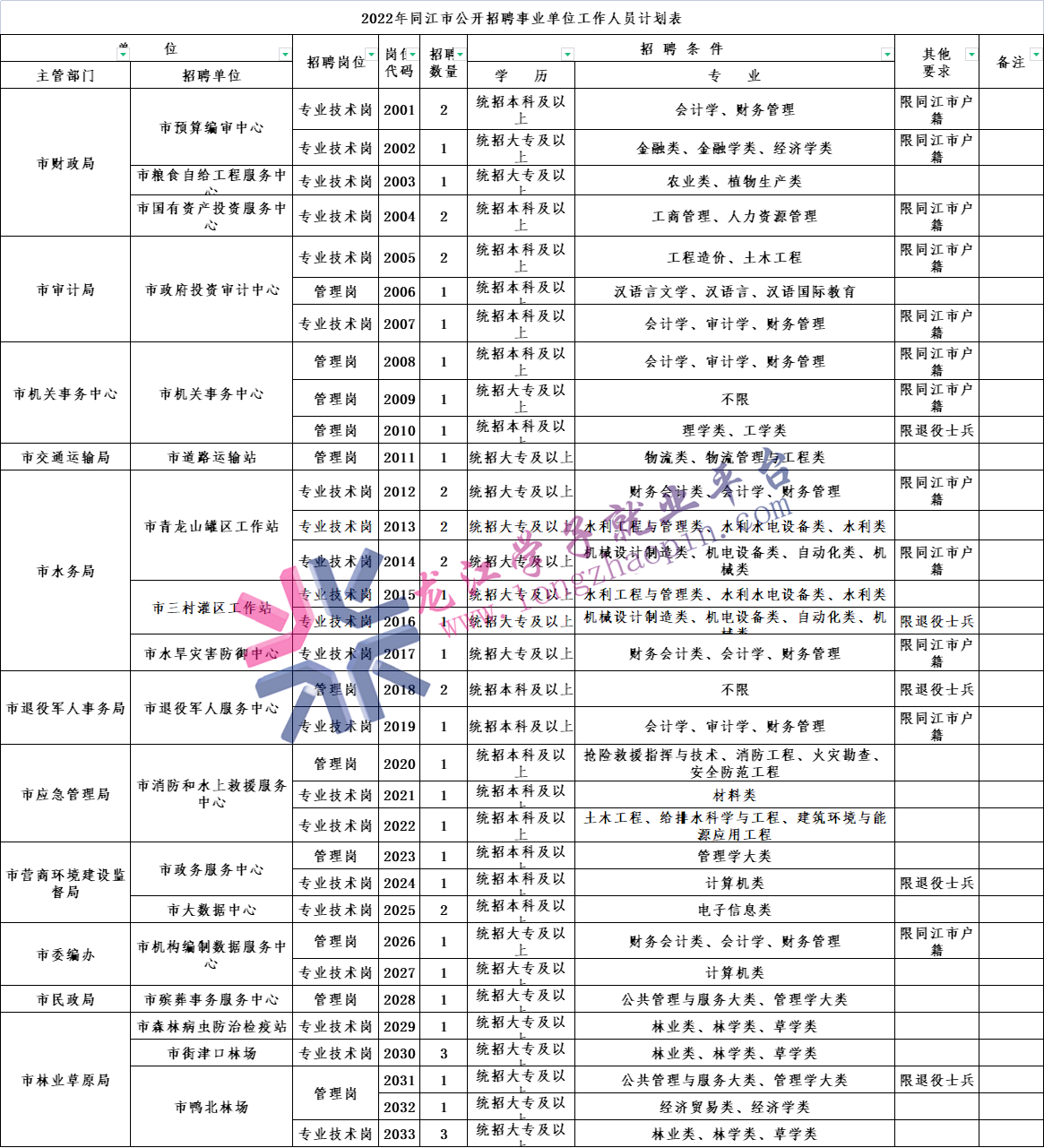 3、招聘岗位专业设置参照:“黑龙江省2022年度各级机关考试录用公务员公告中的相关专业目录”(附件2)。