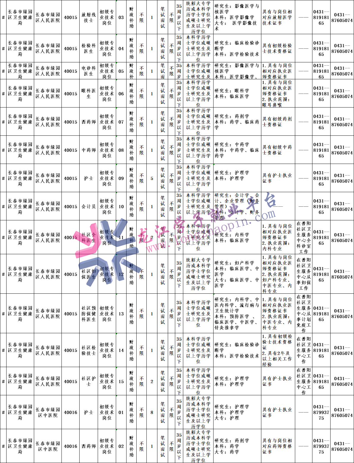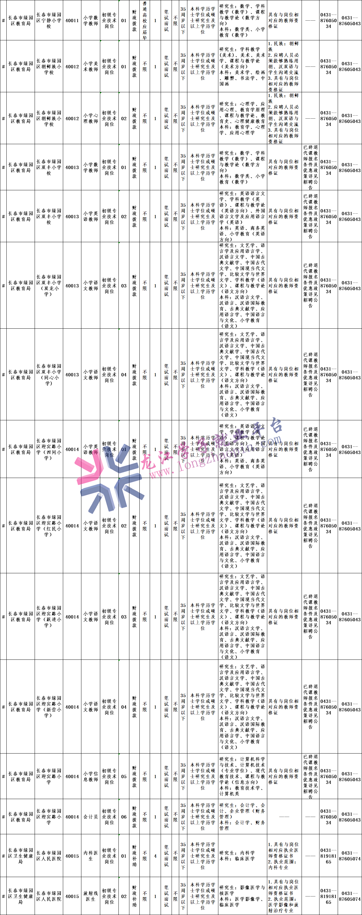(网址:http://ccrs.changchun.gov.cn/)、长春市绿园区人民政府网站(网址:http://www.luyuan.gov.cn/)为本次公告(含补充公告)的发布网站。有关招聘事项及各种通知等信息,均通过长春市绿园区人民政府网站进行发布,请广大考生及时浏览网站。