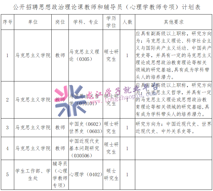 根据《新时代高等学校思想政治理论课教师队伍建设规定》(中华人民共和国教育部令第46号)、《教育部等八部门关于加快构建高校思想政治工作体系的意见》(教思政〔2020〕1号)、《关于印发<深化新时代黑龙江省学校思政课创新创优行动方案>的通知》(黑教工委联〔2020〕5 号)、《黑龙江省事业单位公开招聘人员暂行办法》(黑办发[2006]32号文件)、《黑龙江省事业单位公开招聘工作人员实施细则》(黑人社发[2014]63号)、《关于进一步做好省直事业单位公开招聘工作的通知》(黑人社发[2015]32号)和《关于全面下放省直事业单位公开招聘管理权限的通知》(黑人社发[2015]66号)的有关规定,经学校研究决定,面向社会公开招聘思想政治理论课教师和辅导员(心理学教师专项),现将有关事宜公告如下: