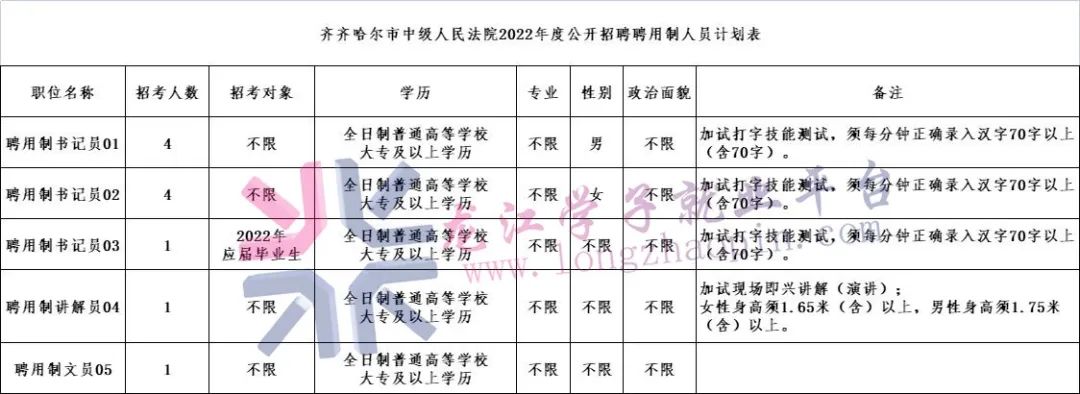 对确定的拟聘用人员,将在齐齐哈尔市中级人民法院官方网站