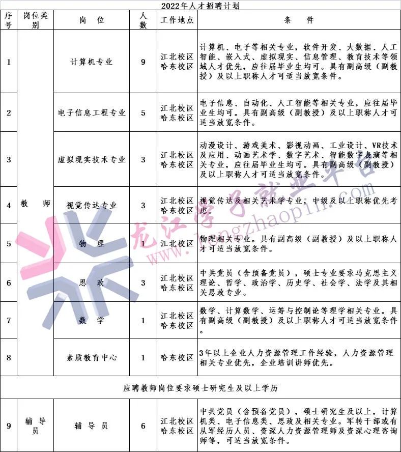 2.符合学校学科、专业建设需要,具有较高的业务素质和良好的职业道德;工作中善于创新、团结协作、事业心强、热爱教育事业,教书育人、为人师表,愿为哈尔滨信息工程学院的发展建设做出贡献。