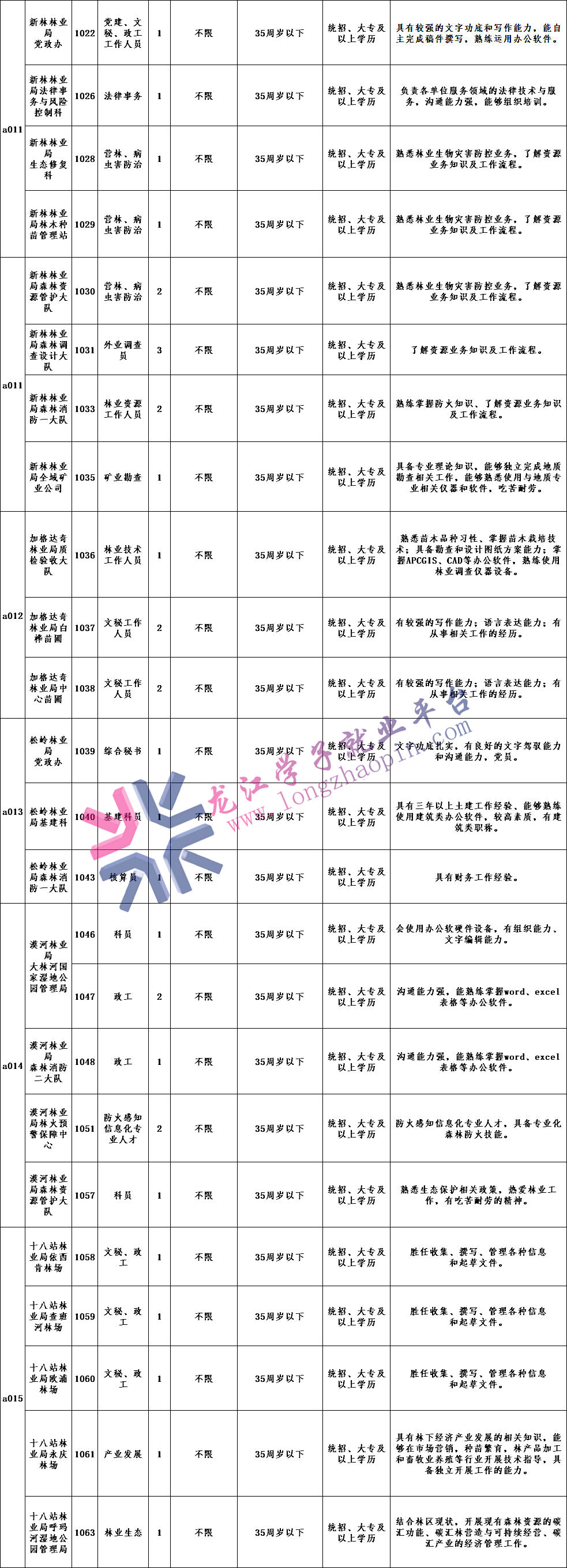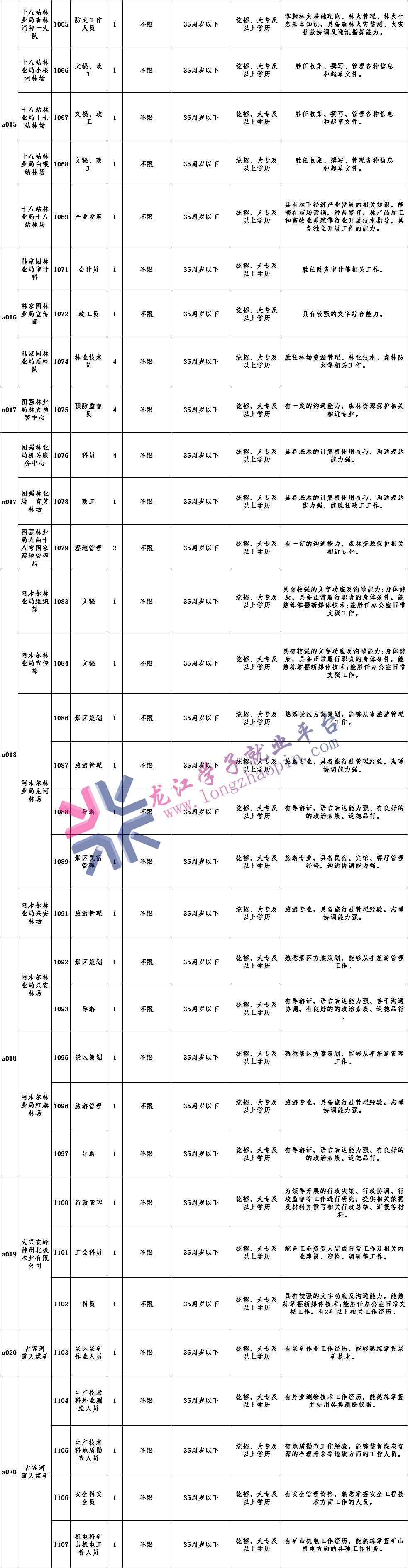 3.放宽各林业局和集团直属企业岗位专业要求限制,改为不限制专业。