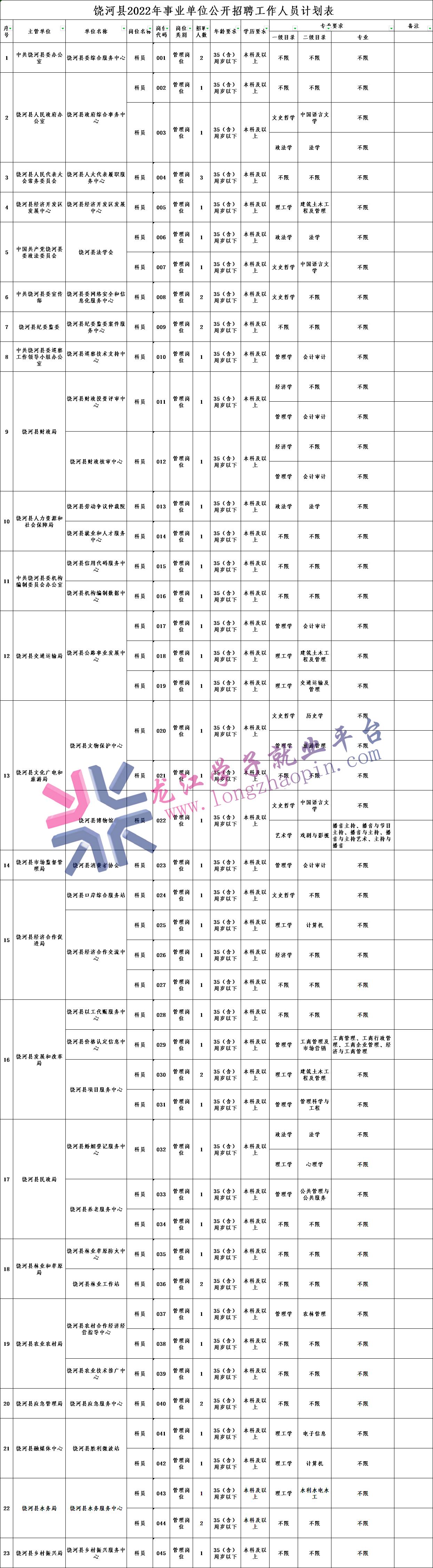 (七)具备招聘岗位所需要的其他资格条件,详见《饶河县2022年事业单位公开招聘工作人员计划表》(附件1)。