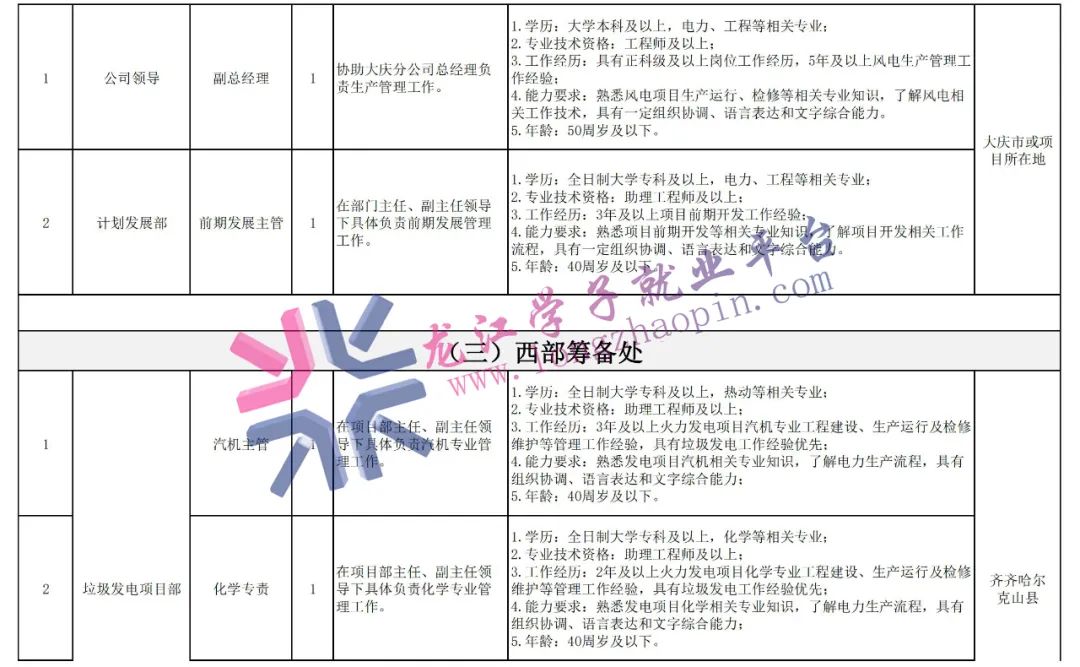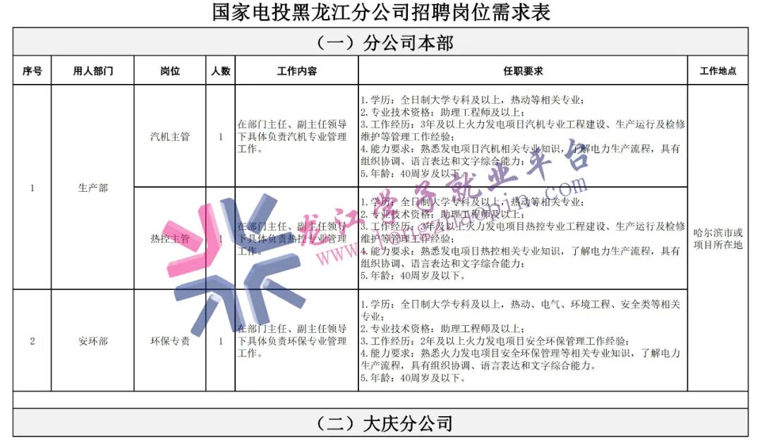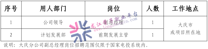 面向国家电投集团系统内、外公开招聘,集团系统内优先考虑。(其中大庆分公司副总经理岗位招聘范围仅限于国家电投系统内。)