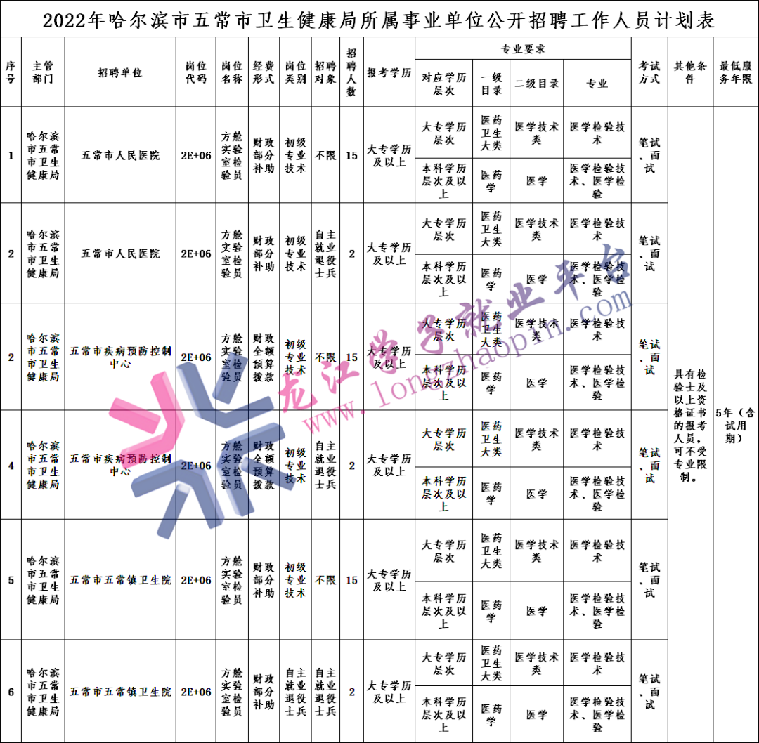 此次公开招聘事业单位工作人员51人。具体招聘岗位、人数、条件等详见《2022年哈尔滨市五常市卫生健康局所属事业单位公开招聘工作人员计划表》(以下简称《招聘计划表》)。