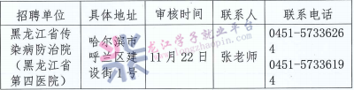 4.网上审核。黑龙江省传染病防治院于2022年11月7日-11月21日9:00-16:00期间受理应聘人员网上申请,进行网上审核,通过资格审核的考生不能改报其他岗位;资格审核未通过的,可以在2022年11月7日-11月21日9:00-16:00期间内取消当前岗位报名改报其他岗位。对资格审核结果有异议的,可以提请仲裁,仲裁由黑龙江省卫生健康委员会事业单位公开招聘工作领导小组办公室负责。仲裁通过的视为报名成功,仲裁未通过的,说明考生不符合此岗位报考条件。网上审核通过人员打印本人报名表。