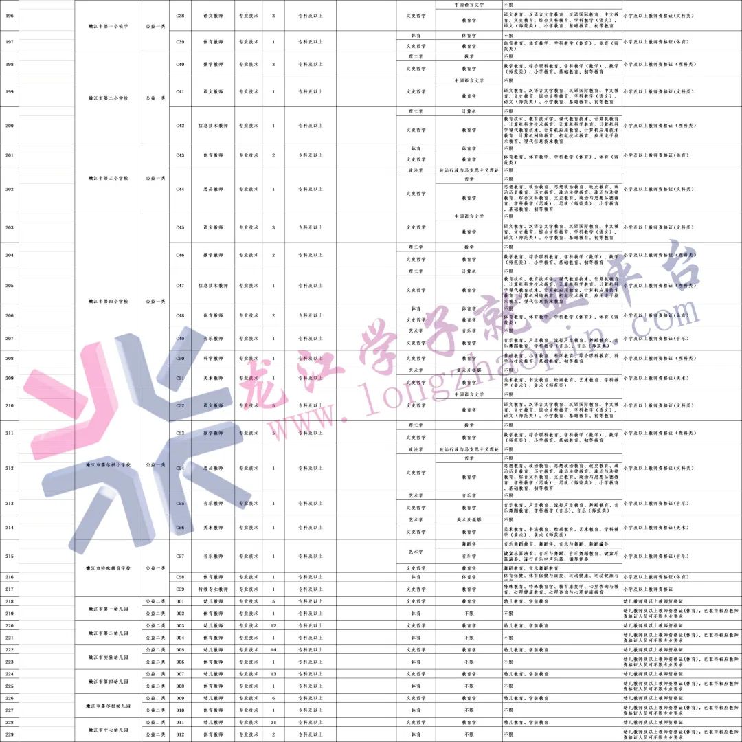 嫩江市直及乡(镇)机关事业单位在编在岗正式工作人员不在此次招聘范围内。