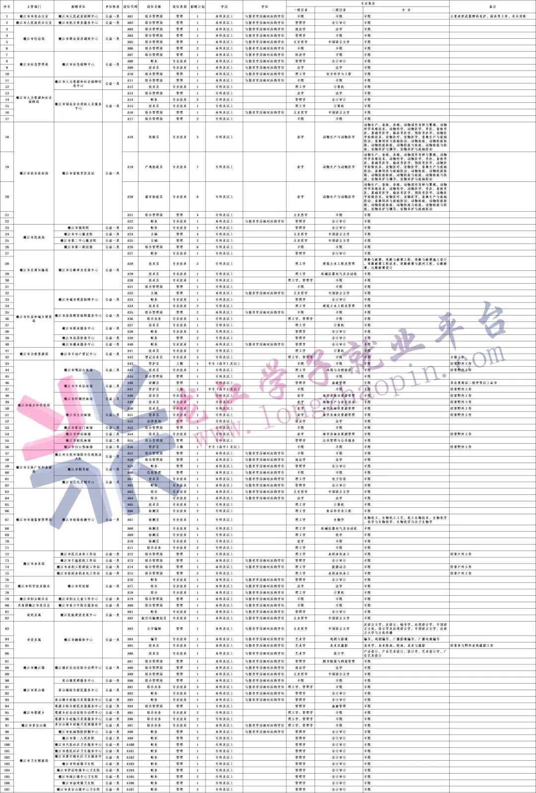 (2)请报考人员慎重选择报考岗位,报考人员只能选择一个单位的一个岗位进行报名。因招聘计划数与报考人数未达到2倍比例取消招聘计划的岗位,报考人员可在规定时限内选择报考其他符合条件的岗位。