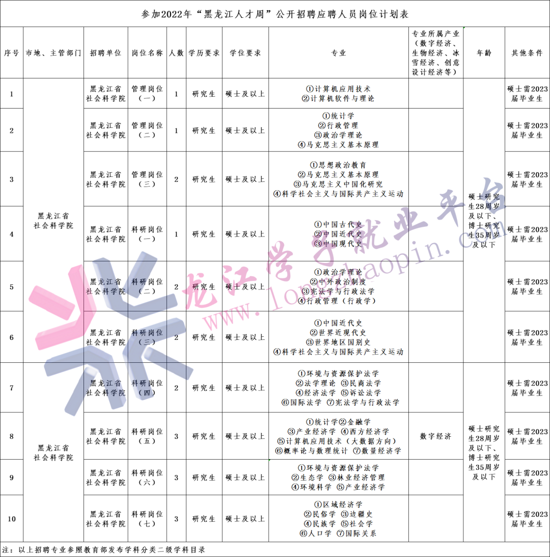 《参加2022年“黑龙江人才周”公开招聘应聘人员岗位计划表》(附件1)。