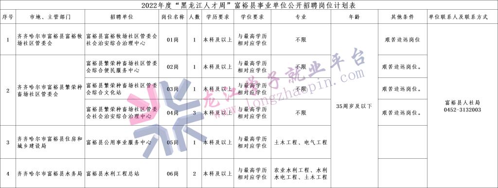 为响应2022年度“振兴龙江∙邀你同行”黑龙江人才周引才活动,根据《黑龙江省事业单位公开招聘人员暂行办法》,经富裕县县委、县政府同意,拟公开招聘事业单位工作人员,现将有关事宜公告如下: