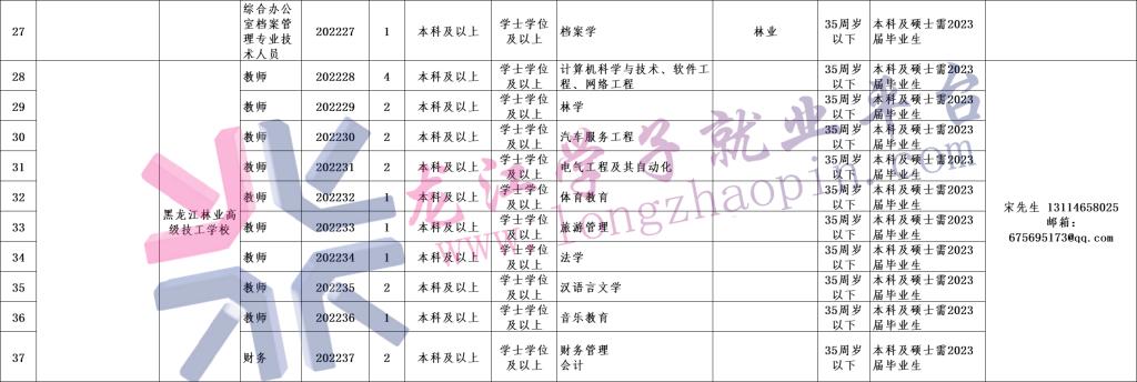 (3)黑龙江林业高级技工学校(岗位代码:20222-202237)