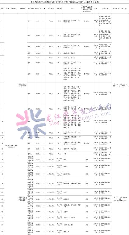 附件1:中国龙江森林工业集团有限公司2022年度“黑龙江人才周”人才招聘计划表