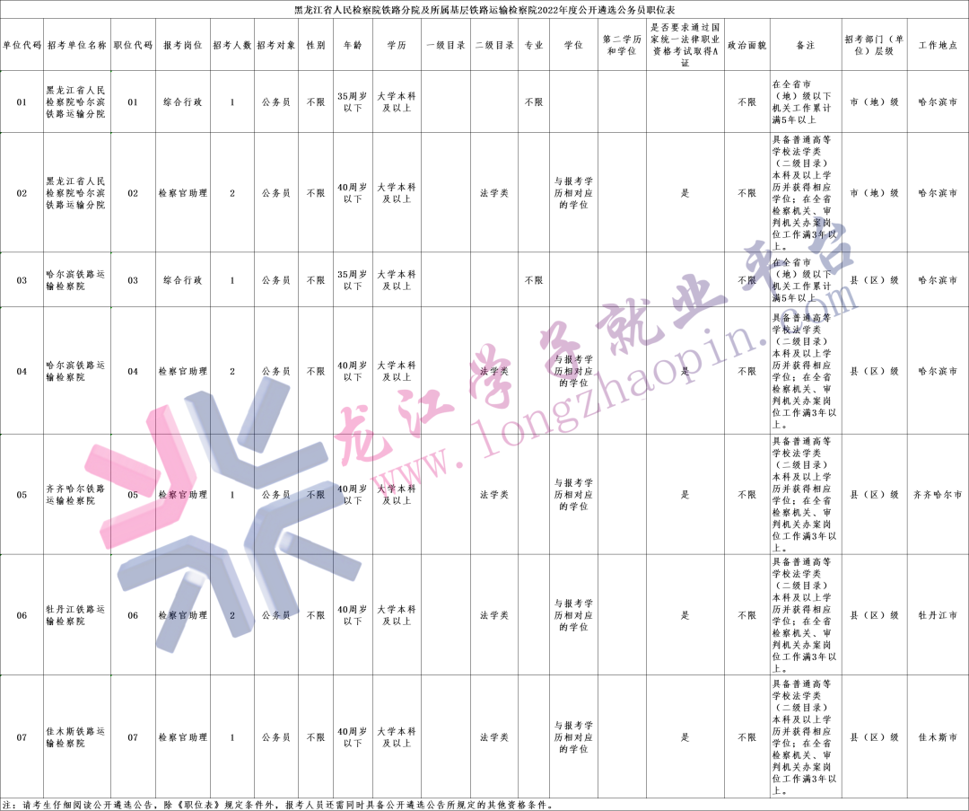 附件1.黑龙江省人民检察院铁路分院及所属基层铁路运输检察院2022年度公开遴选公务员职位表