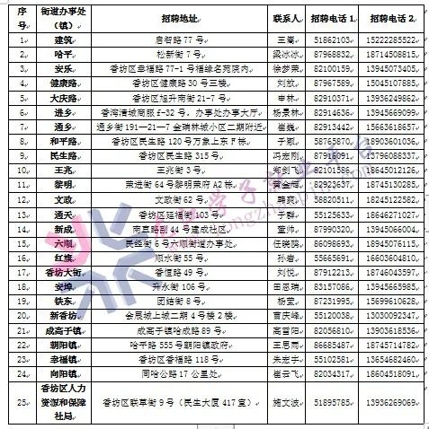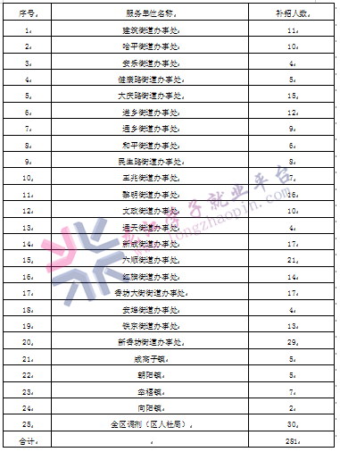 香坊区各街道办事处、镇劳动保障协理员补充招聘名额如下表所示: