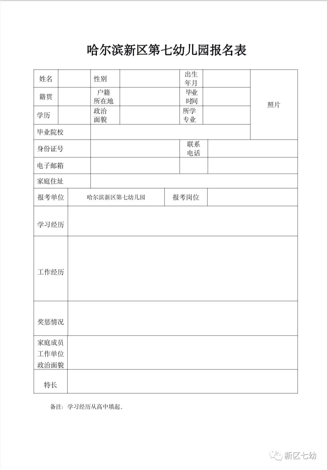 哈尔滨新区第七幼儿园隶属于松北区教育局,是一所全日制公办幼儿园,位于松北区中源大道14681号。根据《哈尔滨新区江北一体化发展区新型公办幼儿园办园模式改革方案》相关要求,经哈尔滨新区第七幼儿园研究决定,现面向社会公开招聘。现将有关招聘事宜公告如下: