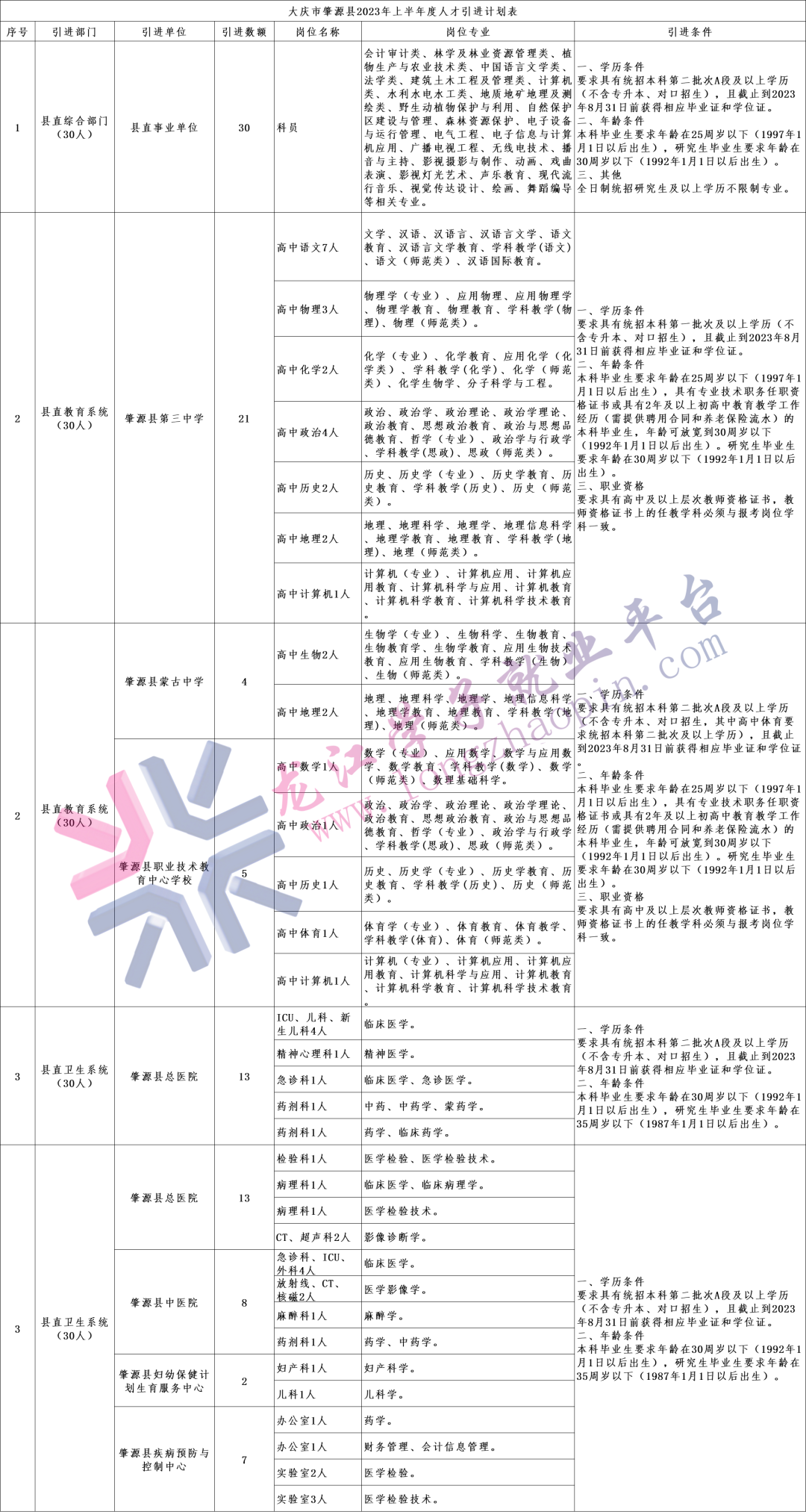 附件1:大庆市肇源县2023年上半年度人才引进计划表