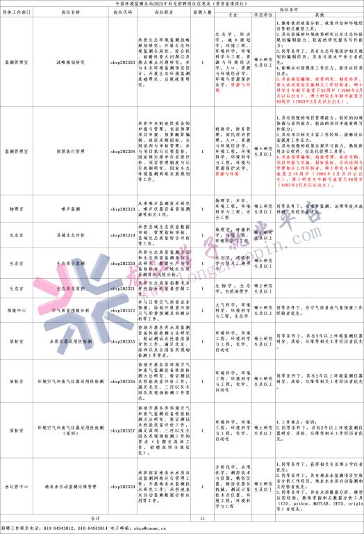 附件1.中国环境监测总站2023年补充招聘岗位信息表