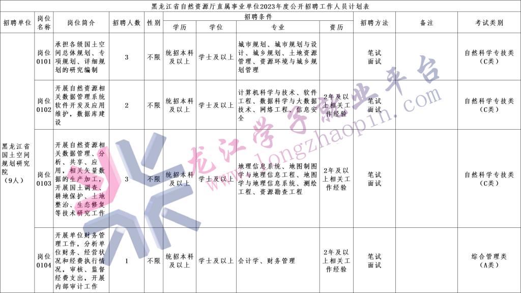 附件1:黑龙江省自然资源厅直属事业单位2023年度公开招聘工作人员计划表