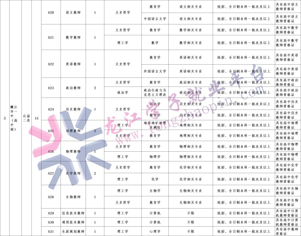 嫩江市高级中学计划引进人才13名;嫩江市职业技术教育中心学校计划引进人才19名;嫩江市第一中学校(高中)计划引进人才15名(具体岗位见附件1)。学科引进名额可视引进工作实际情况适当调整。