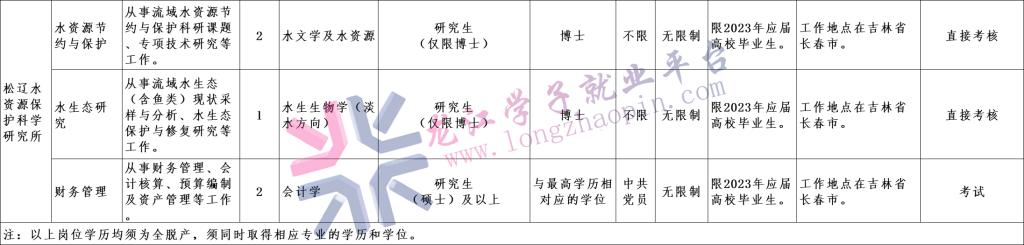 招聘岗位信息详见《松辽委所属事业单位2023年度招聘人员计划表》(附件)。
