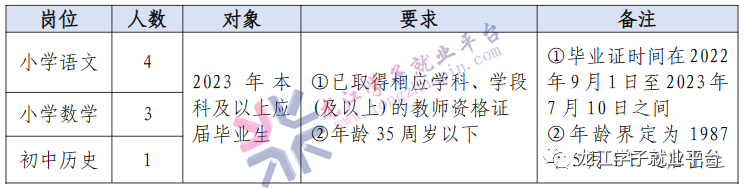 招聘教师8名,分别为小学语文岗位4人、小学数学岗位3人,初中历史岗位1人。