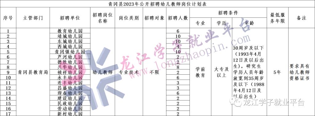 附件1.《青冈县2023年公开招聘幼儿教师岗位计划》
