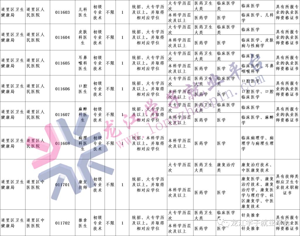 为使招聘工作公开、公平、公正,招聘工作由哈尔滨市道里区人社局党政办公室纪检部门全程监督,监督电话0451-84517678
