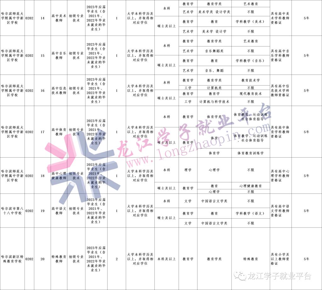 根据《2023年度哈尔滨“丁香人才周”(春季)事业单位引才招聘公告》,按照《关于印发黑龙江省事业单位公开招聘工作人员实施细则的通知》(黑人社发〔2014〕63号)要求,现将松北区(哈尔滨新区)教育系统公开招聘中小学教师报名等有关事宜通知如下: