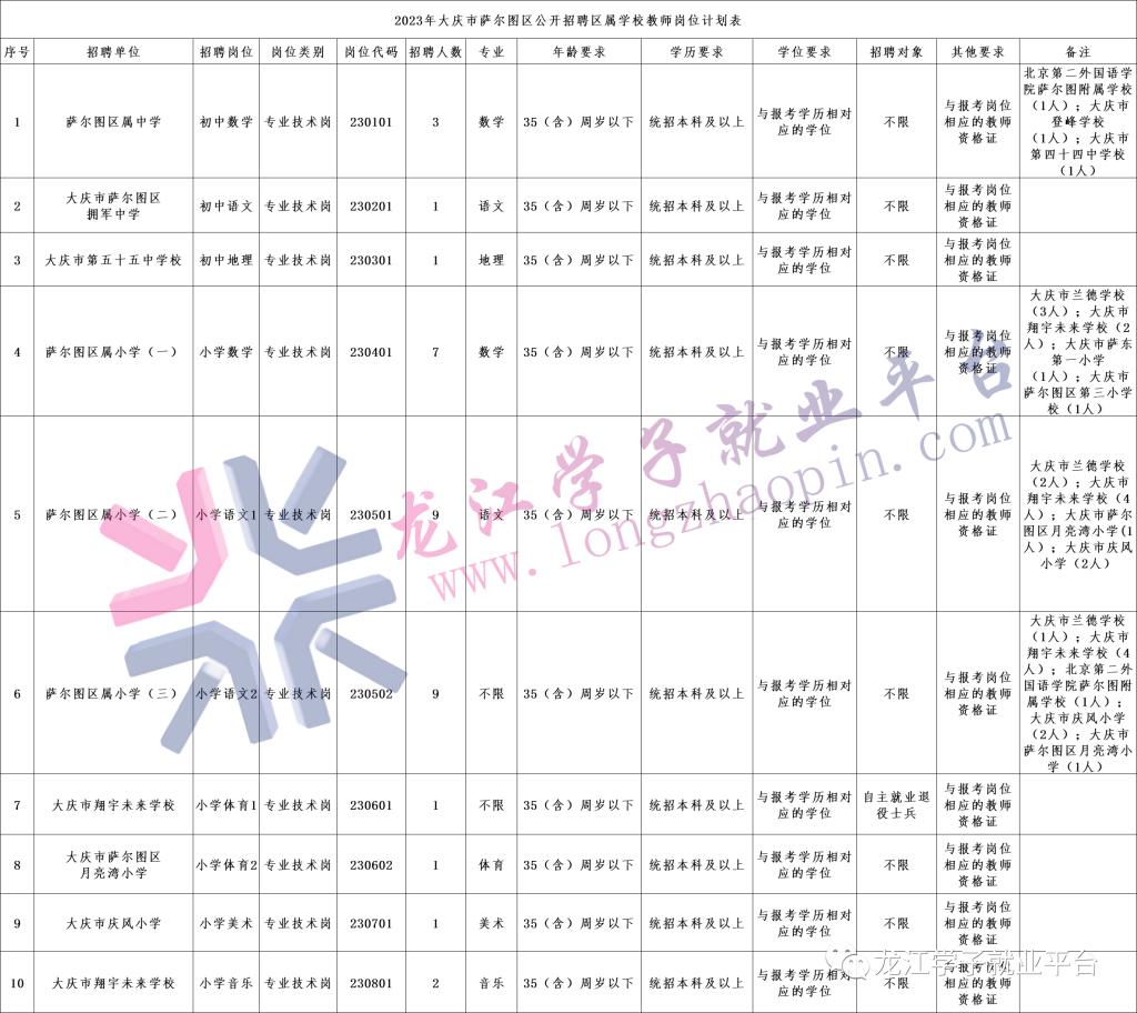 1:2023年大庆市萨尔图区公开招聘区属学校教师岗位计划表