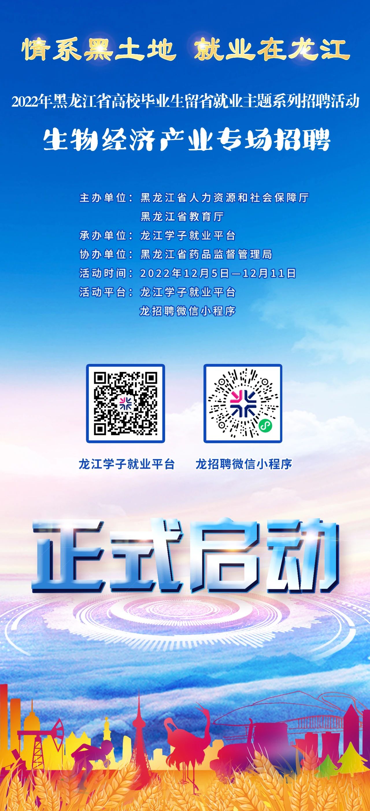 “情系黑土地 就业在龙江”2022年黑龙江省高校毕业生留省就业主题系列招聘活动——生物经济产业专场招聘正式启动...
