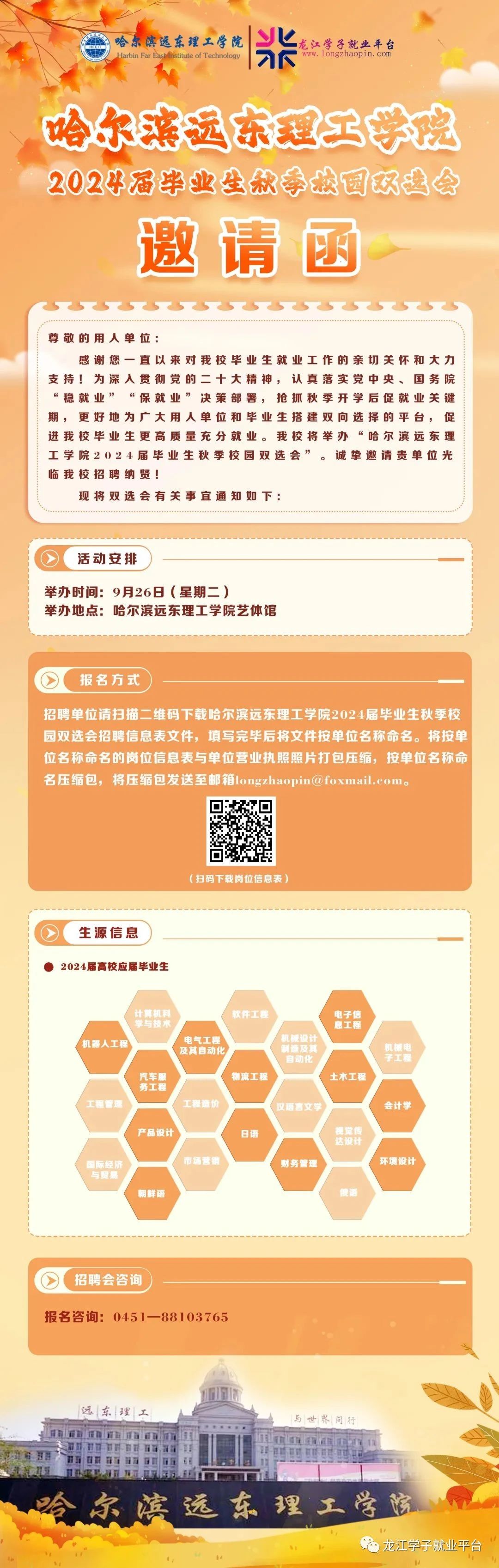 【诚邀企业】哈尔滨远东理工学院2024届毕业生秋季校园双选会邀请函