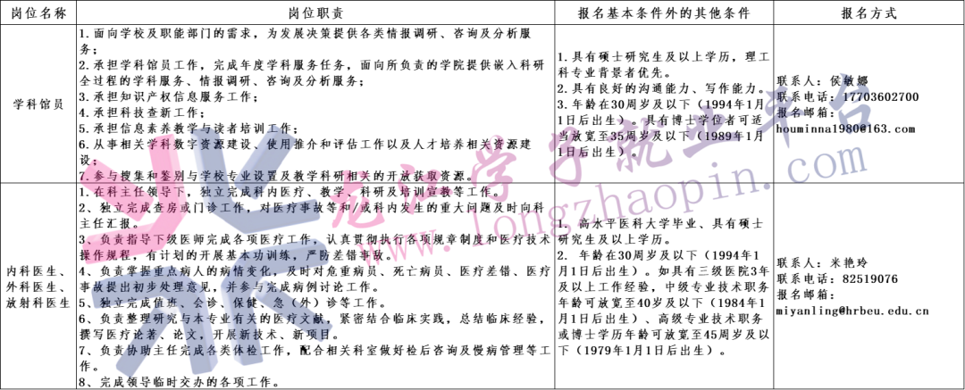招聘的所有后续事宜将在哈尔滨工程大学人力资源处网站
