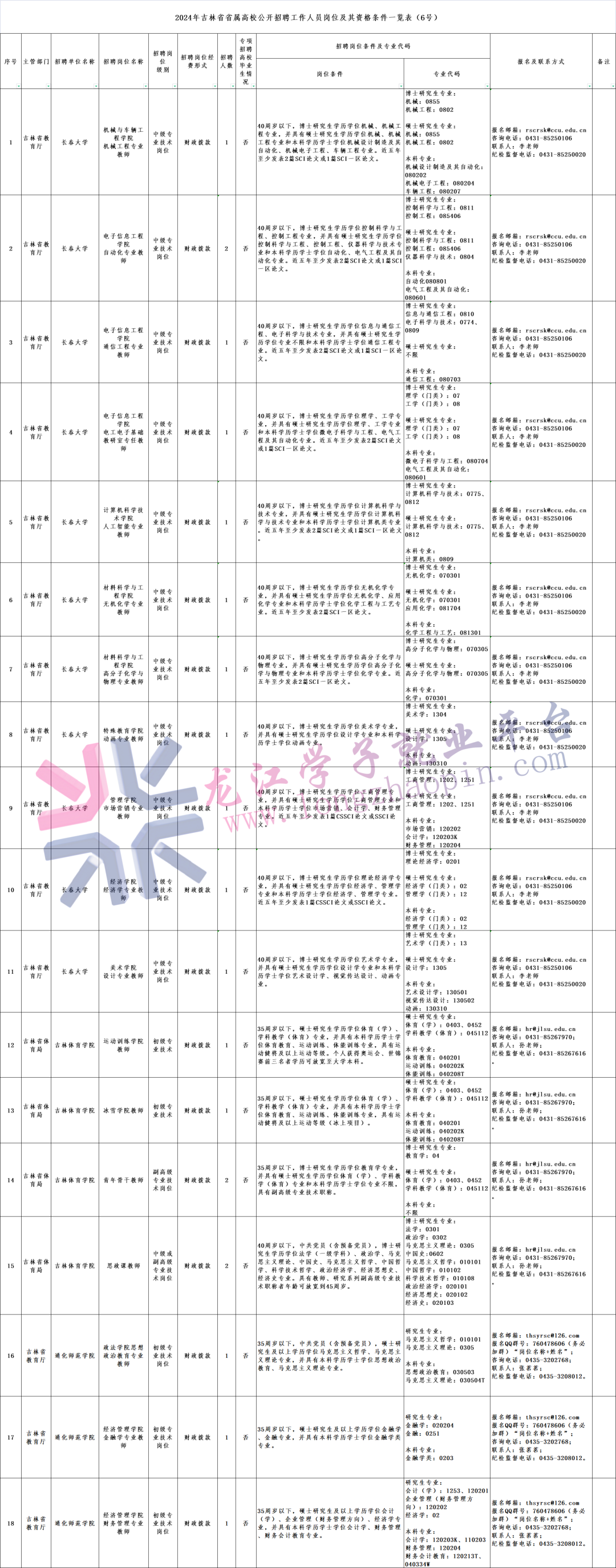 根据《事业单位人事管理条例》《中共中央组织部 人力资源社会保障部关于进一步做好事业单位公开招聘工作的通知》《吉林省人才发展条例》《吉林省人民政府办公厅转发关于全面建立和进一步完善全省事业单位新进人员公开招聘制度意见的通知》《关于创新优化人事管理政策支持高等学校高质量发展的意见》和《关于认真做好2024年度全省事业单位公开招聘工作的通知》等文件精神,长春大学、吉林体育学院、通化师范学院、吉林交通职业技术学院、白城医学高等专科学校等5所省属高校决定面向社会公开招聘工作人员。现将有关事宜公告如下: